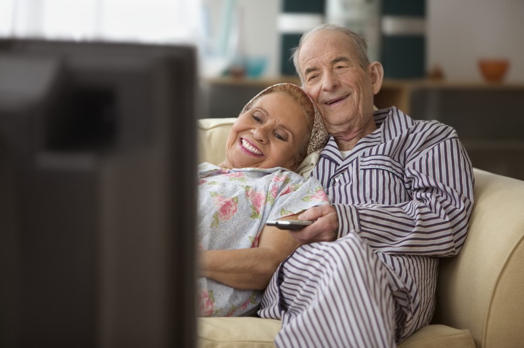 Elderly couple watching television